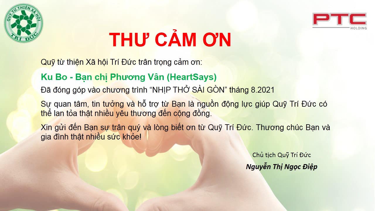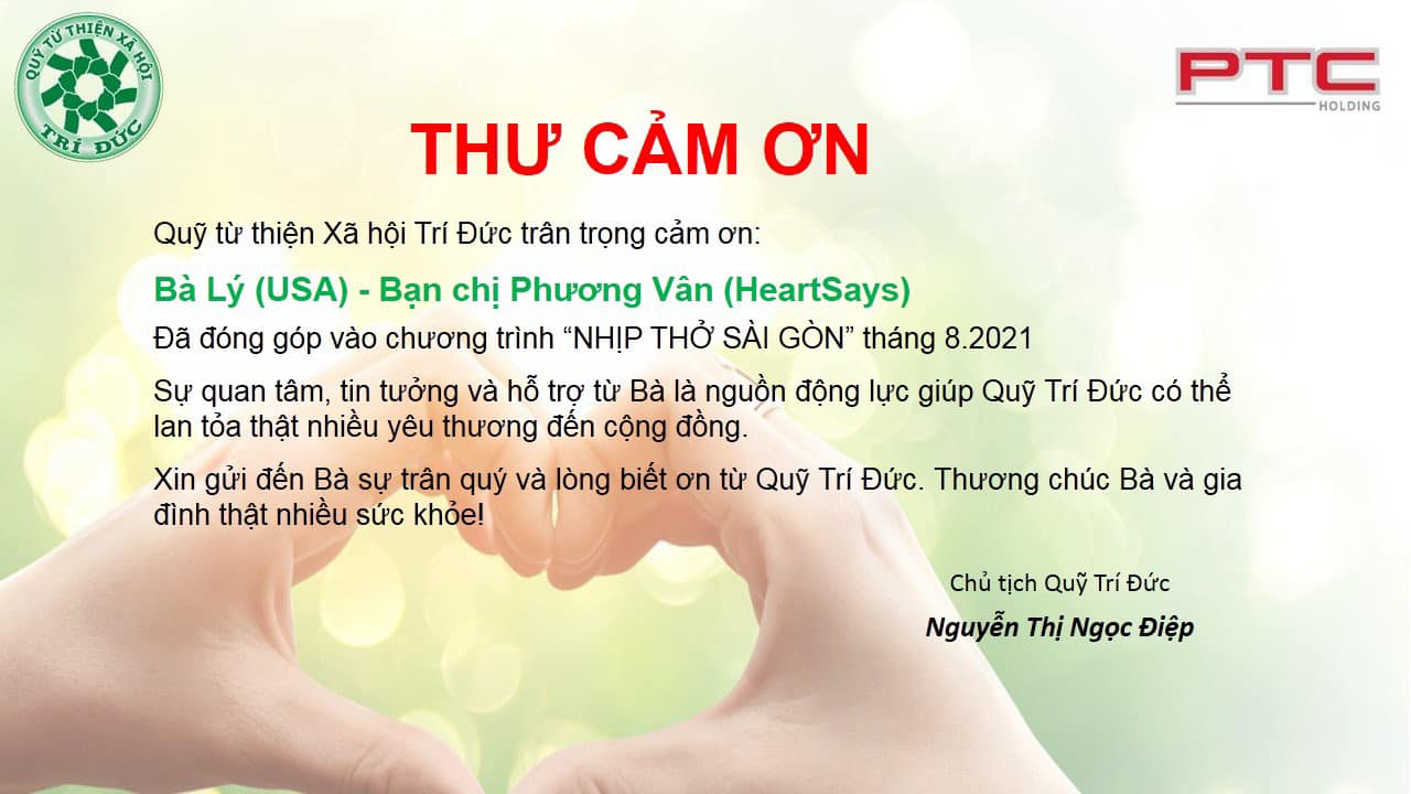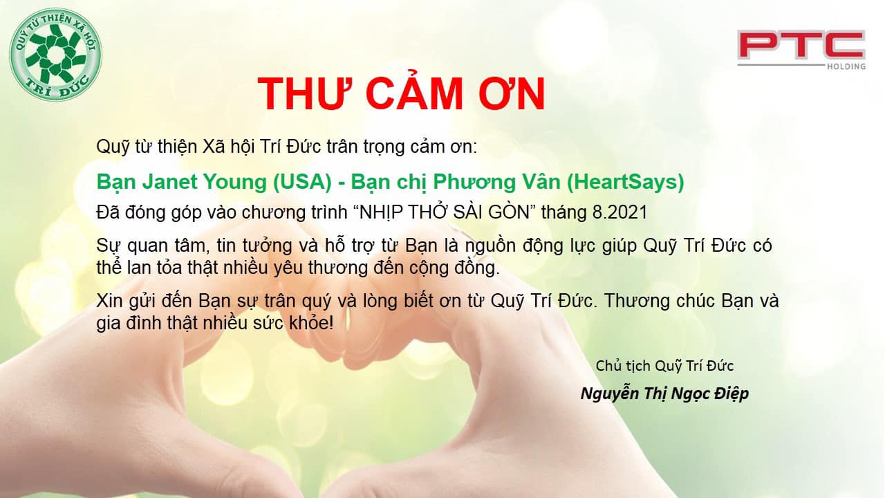 Với tất cả tấm lòng, một lần nữa Quỹ Trí Đức xin gửi lòng biết ơn và sự cảm mến đến các Mạnh Thường Quân – những người thân và những người từ lạ đến thân quen, vì đã luôn đồng hành cùng Sài Gòn trong những ngày gian khó.
